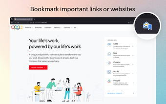 Zoho Mail Bookmarks, Firefox tarayıcısında çalışan bir eklentidir. Bu eklenti, kullanıcılara e-posta kutuları üzerinden URL veya bağlantıları kolayca kaydetme imkanı sunar. Kullanıcılar, kaydettikleri bağlantıları kişisel referansları için saklayabilir veya ekipleriyle paylaşabilir. Eklenti, kullanıcıların çevrimiçi içeriklere hızlı erişim sağlamasını kolaylaştırır ve sosyal iletişimde verimlilik artırır.